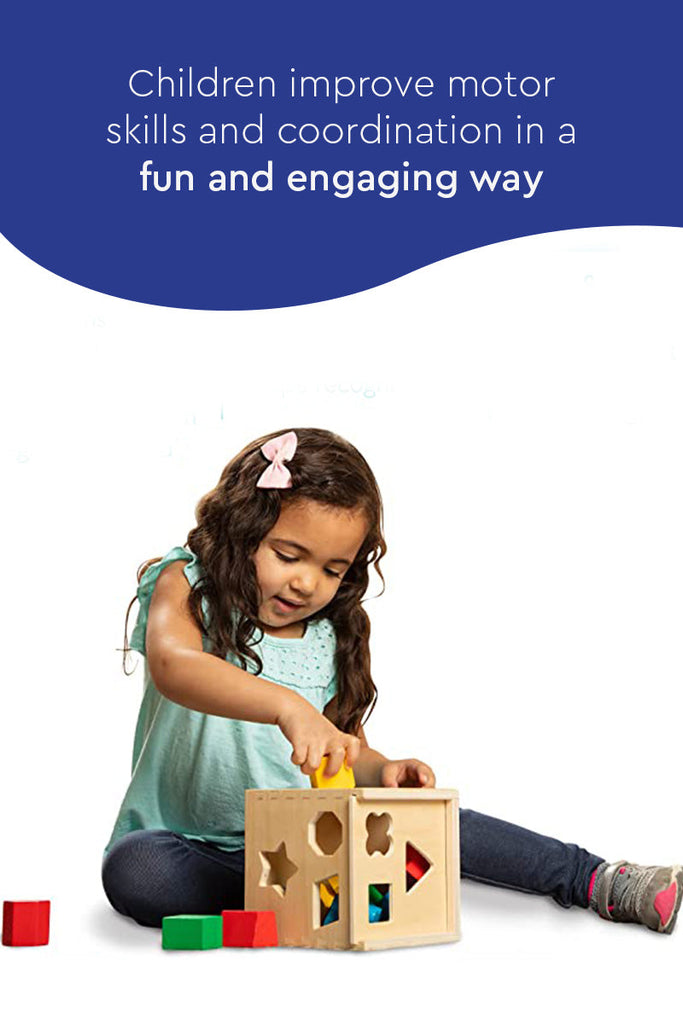 Children can improve their hand-eye coordination and recognition of colors and shapes while having fun playing and discovering how the blocks fit together. With its easy-to-play design, this cube is perfect for developing children.