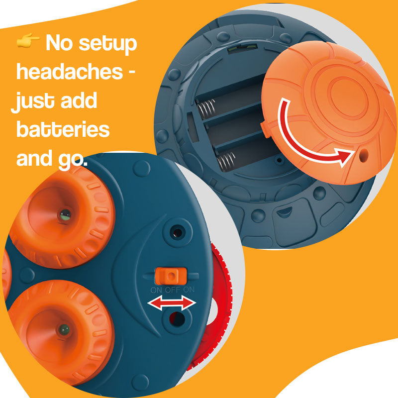 Battery life depends on usage, but the gentle LED projection is designed to be energy-efficient for extended play sessions.
