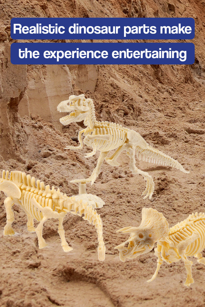 This Dinosaur Excavation Toy is the perfect opportunity to provide your child with an exciting educational experience. Kids' can have fun excavating various dinosaur fossil parts while developing quality coordination, imagination, touch recognition, and observation skills and getting a feel for a real-life archeological experience.