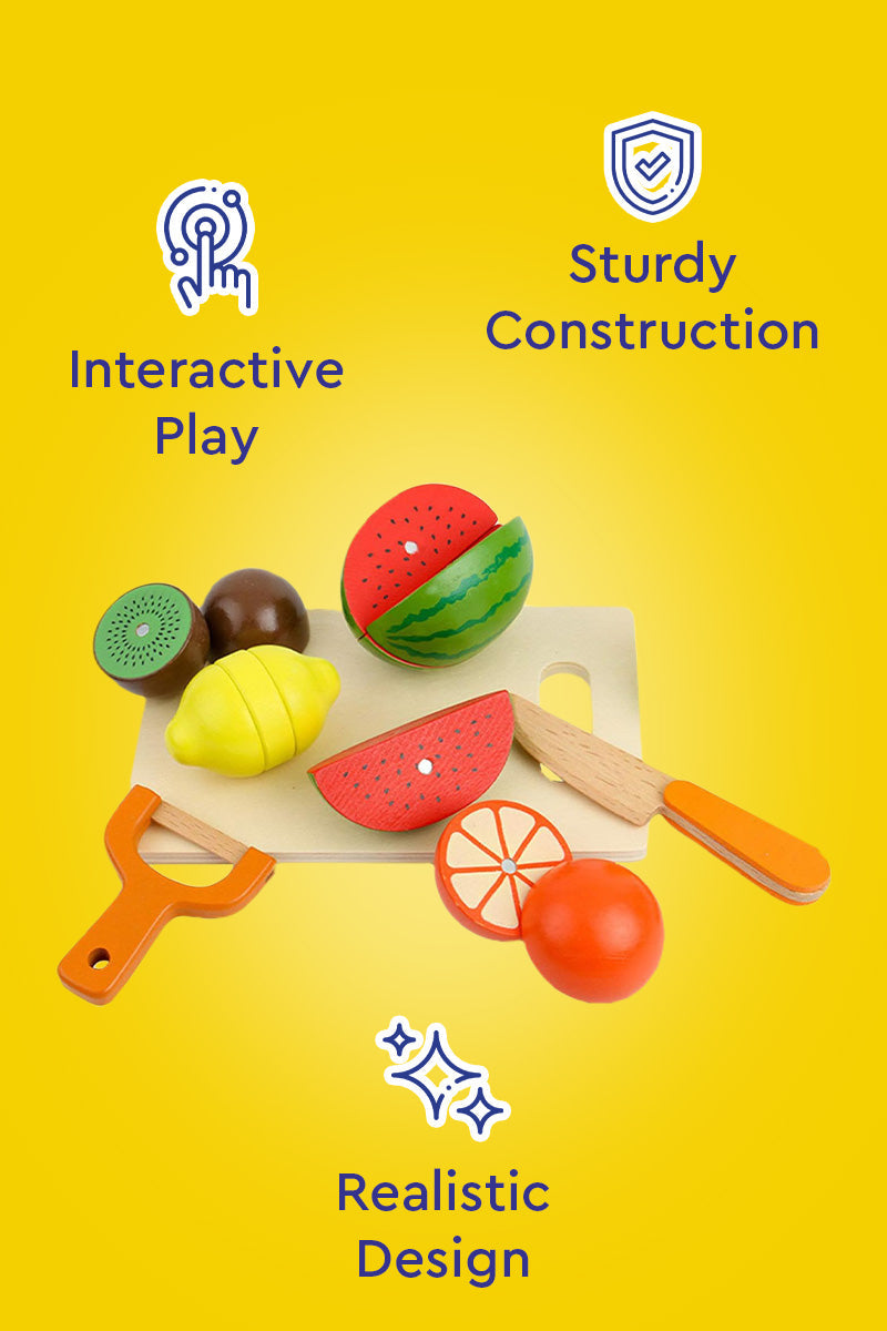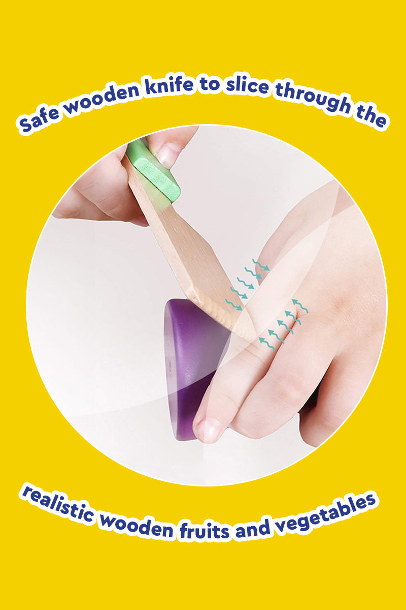 Dive into the world of interactive play as your child wields the safe wooden knife to slice through the realistic wooden fruit and vegetables, promoting fine motor skills and sensory exploration.