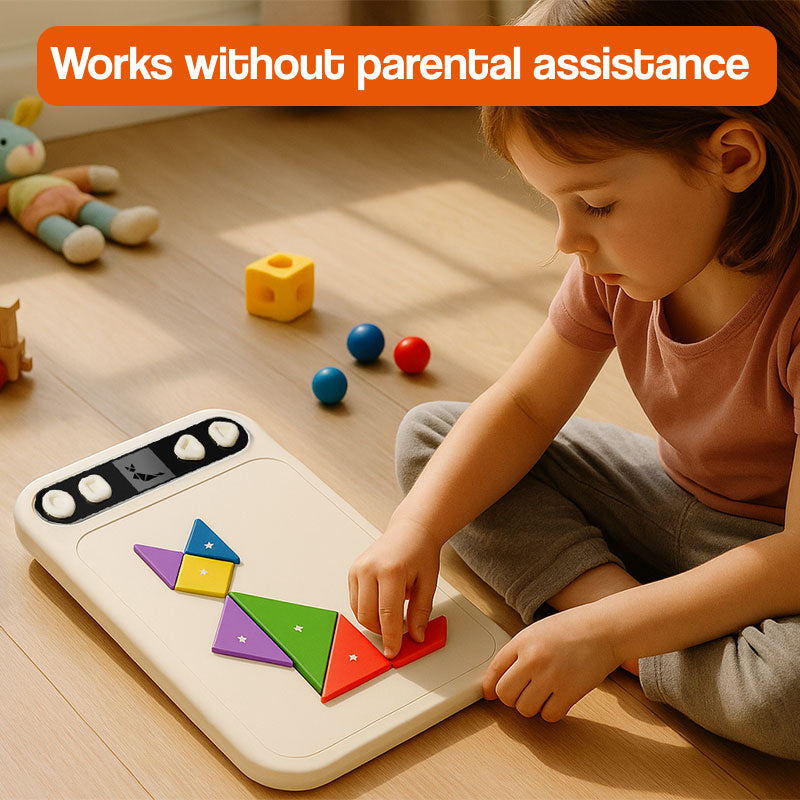 Unlike screen-based games, this uses physical manipulation and spatial reasoning with a TÜV-certified display that's safe for young eyes - no blue light or backlight.