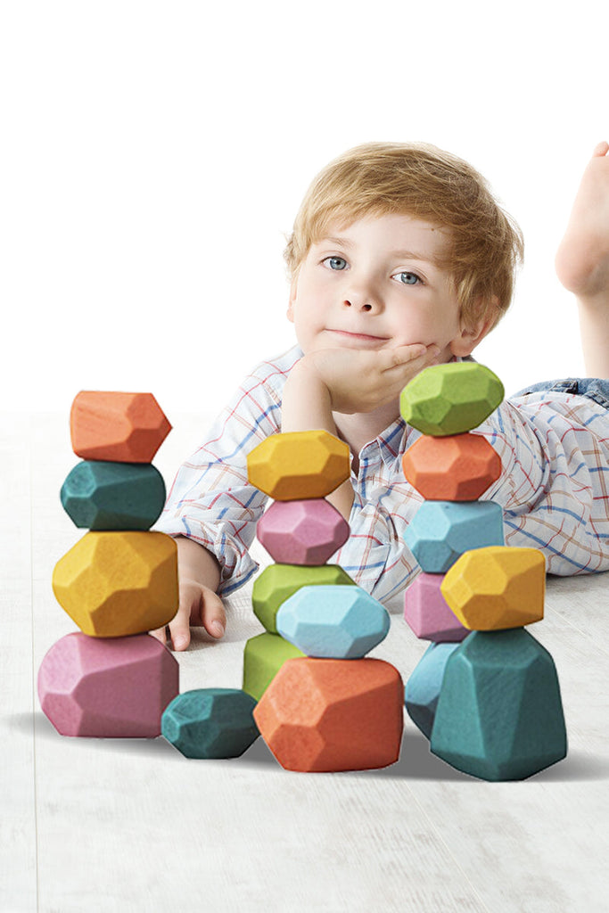 KID-FRIENDLY COLORFUL DESIGNThe stone blocks have multiple flat cut surfaces, allowing children to stack various forms of stones to the highest level.